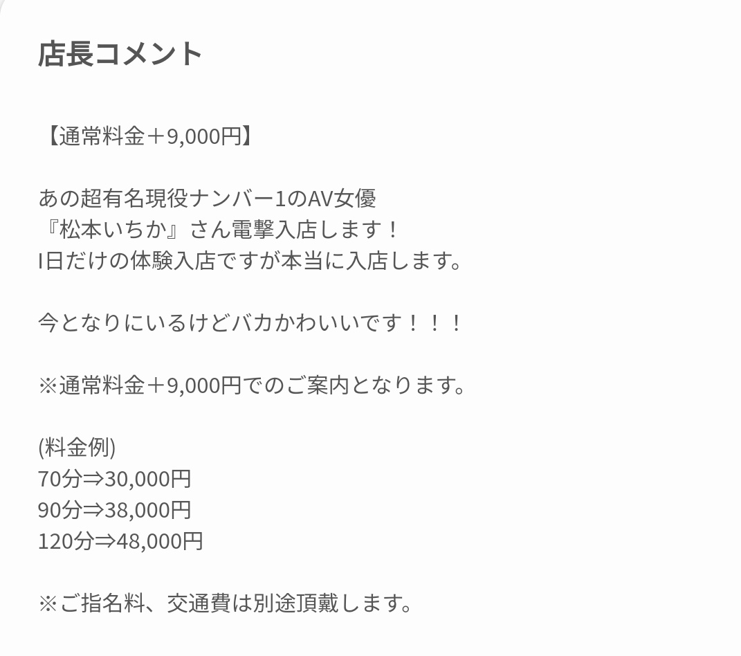 松本いちか、錦糸町の*出勤強すぎるし、そして安すぎる。。早く教えてよ。。